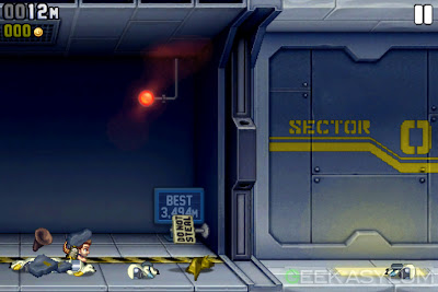 Jetpack Joyride (Halfbrick) is your basic side scrolling obstacle-based game. Your character is a failing salesman who stumbles upon a secret laboratory who is developing a prototype machine gun powered jetpack. Pretty straightforward.